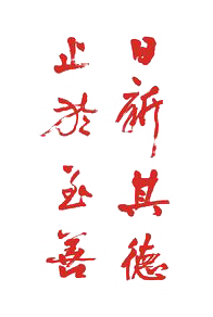 “日新其德”出自《易经·大畜卦》,“止于至善”出自《礼记·大学》。《易经·大畜卦》讲全面繁荣的“大畜”局面要靠“日新其德”的贤才去开创和维护,《礼记·大学》讲修身齐家治国平天下的道理。二篇均有一个“大”字,同大学之道正合。