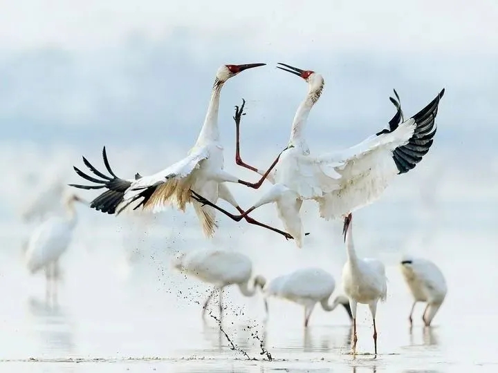 每年,约占世界白鹤种群数量70%的白鹤,从位于尤莉娅家乡的克塔雷克国家公园启程,那里也被称为“白鹤的家乡”,飞越上万里,在鄱阳湖越冬。