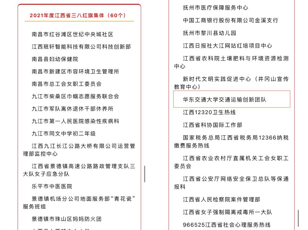 beat365官网交通运输创新团队获评江西省三八红旗集体。