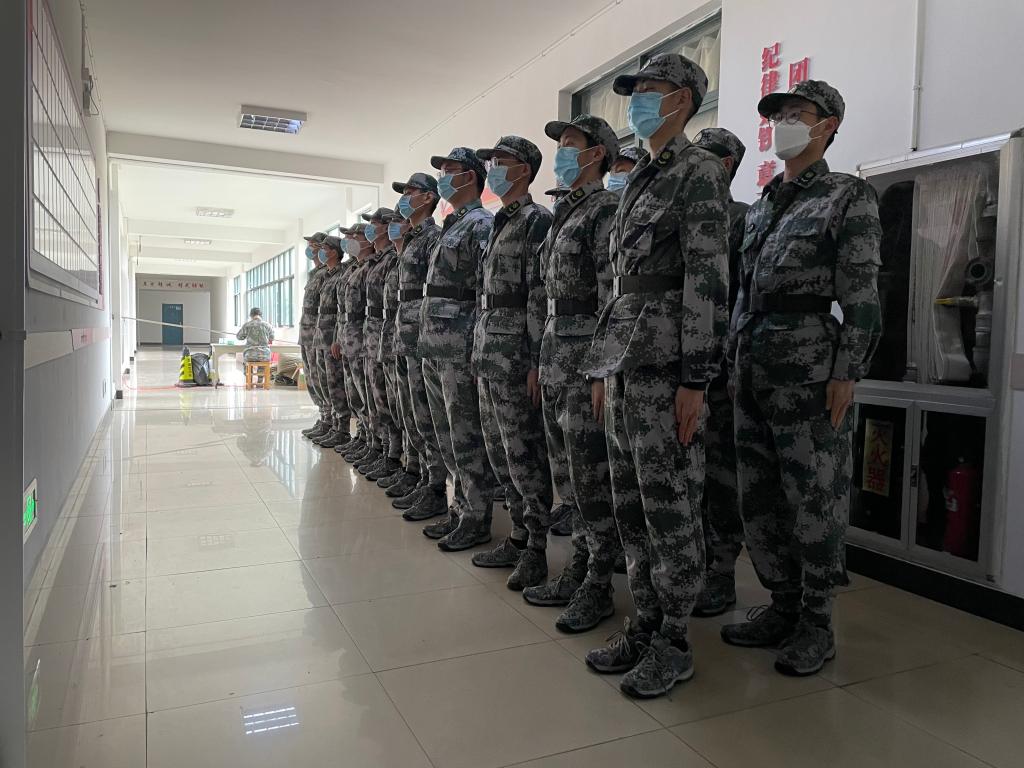 凌晨4:30,杨培杰接到指导员的电话,要求国旗护卫队全体队员随时待命,配合保卫处的工作。挂完电话,他立即做了人员安排,并召集骨干召开紧急会议,商量巡视校园、把控出口、维护秩序及消毒消杀等工作方案。