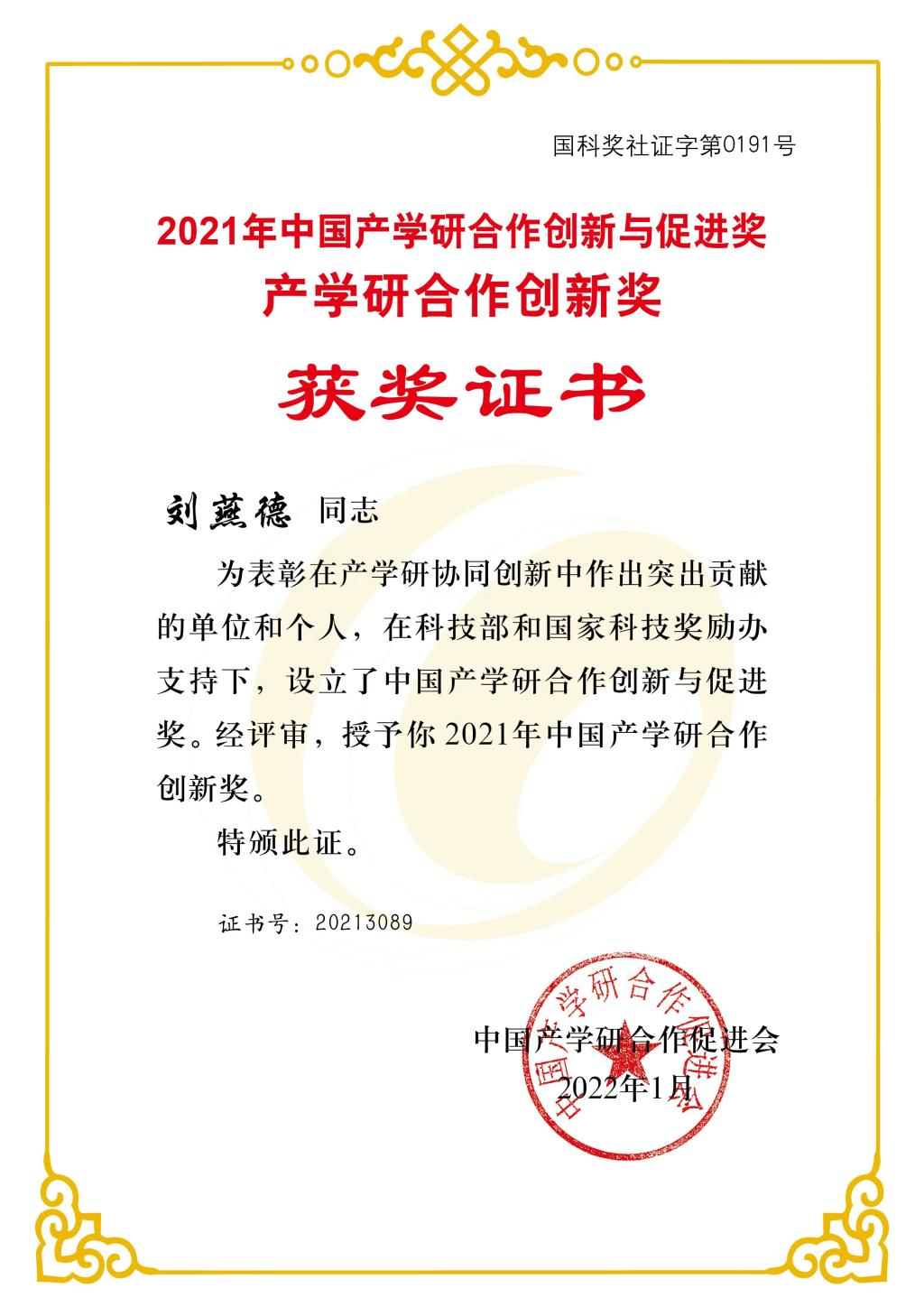 中国产学研合作促进会产学研合作创新与促进奖由国家科技奖励工作办公室批准设立,设有“产学研合作突出贡献奖”“产学研合作创新奖”“产学研合作促进奖”“产学研工匠精神奖”“产学研合作创新成果奖”,是在构建以企业为主体、市场为导向、产学研深度融合的技术创新体系中,面向产学研界设立的协同创新最高荣誉奖。