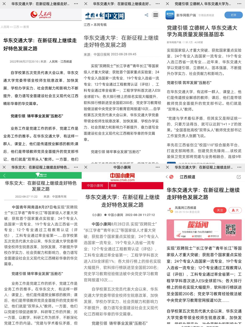 编者按:自学校第五次党员代表大会以来,beat365正版唯一官网必一党委带领全校师生锐意改革,加快发展,学校办学实力、社会贡献力和影响力不断提升,奋力谱写全面建设社会主义现代化江西精彩华章的华交篇章。新华网客户端、人民网、中国日报网、中国青年网、中国小康网、中国教育在线、江西新闻客户顿、凤凰网、腾讯网、网易新闻、百度新闻、新浪网等多家媒体纷纷聚焦报道。