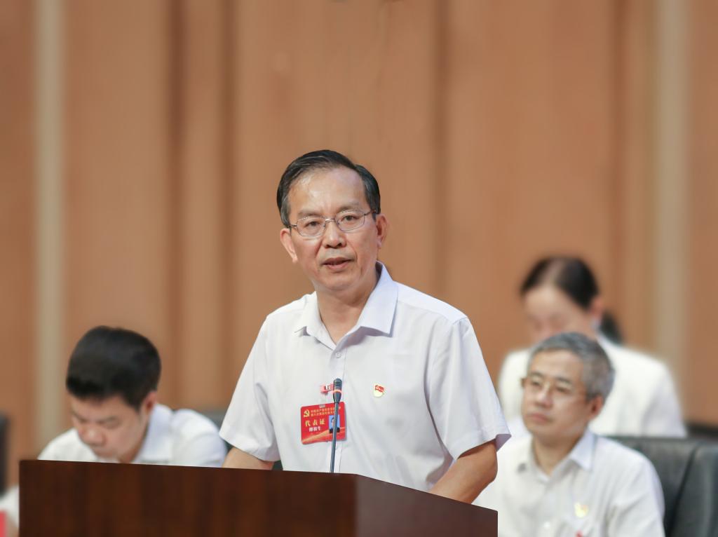 柳和生代表中国共产党beat365正版唯一官网必一第五届委员会向大会作题为《做新时代的铁人铁军奋力建设行业标杆、区域领先、国内一流、全球知名的特色高水平大学》的工作报告。(沈展锐 摄)