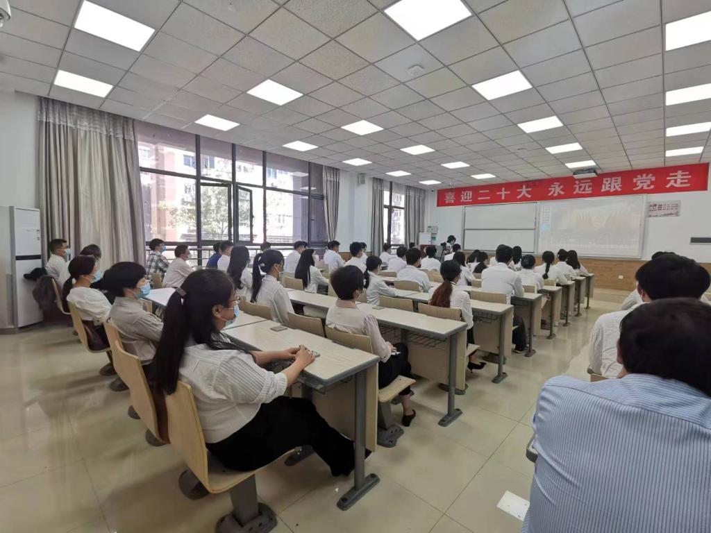 土建学院院领导、科级以上干部和在校教工党员集中收看开幕会直播