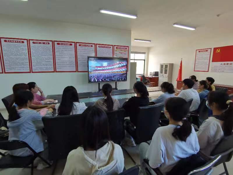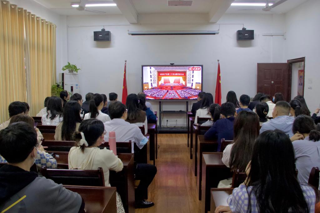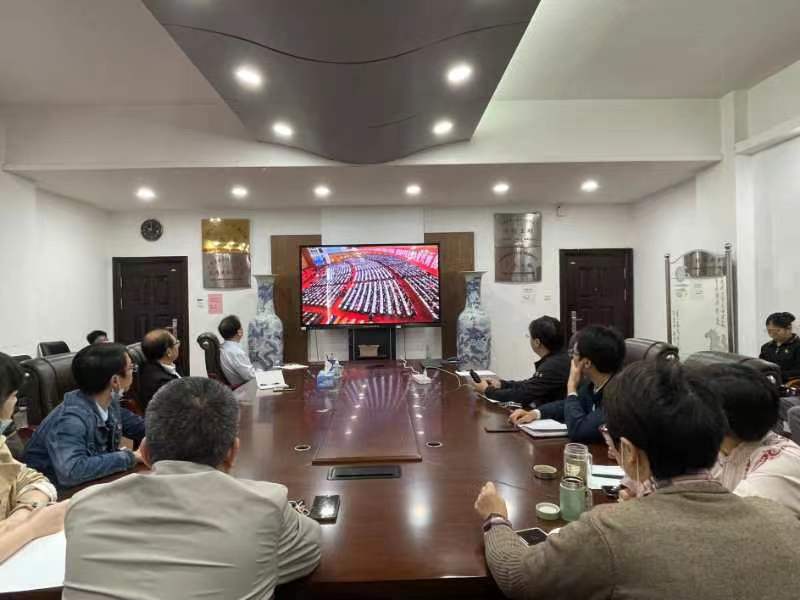 外语学院院领导、科级干部、师生党员、学生代表集中收看开幕会直播