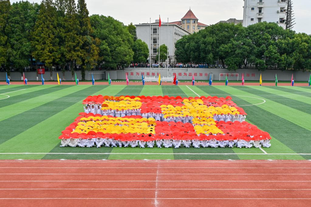 伴着慷慨激昂的《运动员进行曲》,国旗队、校旗队、彩旗队和19个师生方阵队依次入场,他们斗志昂扬,步履坚定,喊着响亮的口号,昂首阔步向主席台走来,展现出蓬勃朝气与青春活力。