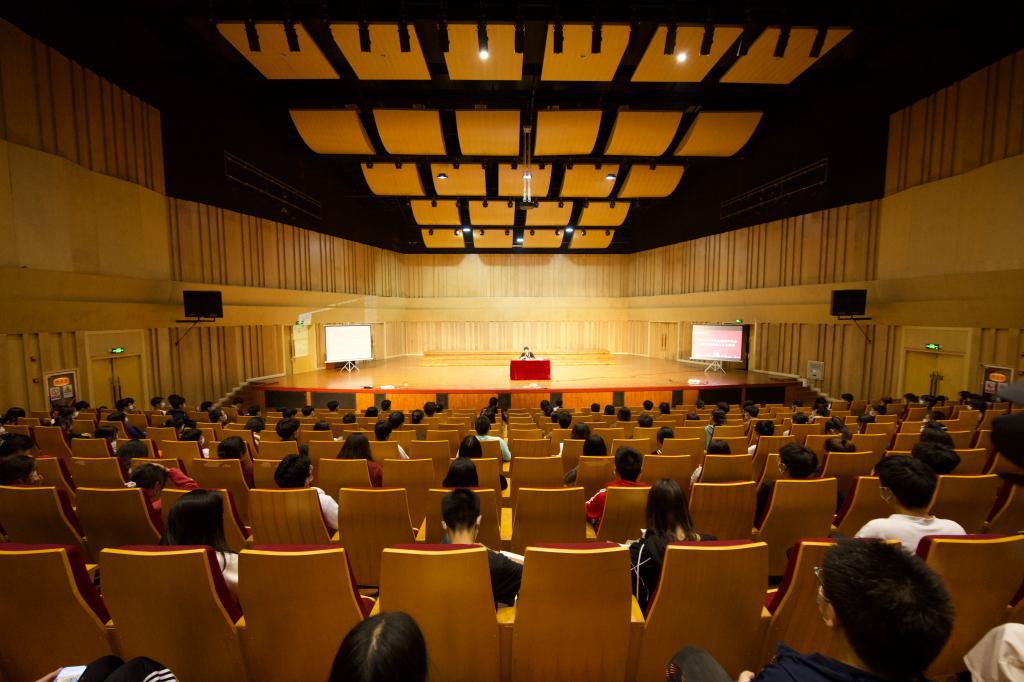宣传部、校团委负责人,校世纪英才班全体成员、校级组织学生骨干代表200余人现场聆听报告。(沈展锐、校团委摄)