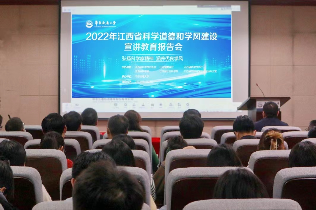 11月29日,由江西省科学技术协会、江西省教育厅、江西省科学技术厅、江西省科学院、江西省社会科学院、江西省国防科学技术工业办公室联合主办,beat365官网承办的“弘扬科学家精神 涵养优良学风作风”2022年江西省科学道德和学风建设宣讲教育报告会在北区图书馆报告厅举行,江西省科协党组成员、副主席孙卫民,副校长刘林芽出席报告会。
