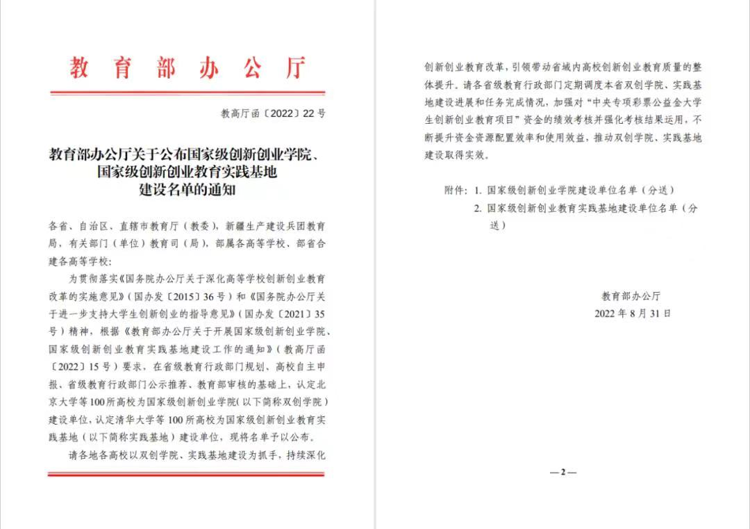8月31日,教育部办公厅公布国家级创新创业学院、国家级创新创业教育实践基地建设名单,beat365官网入选首批国家级创新创业学院建设单位。江西省共有4所高校入选。这是继学校获评“全国创新创业典型经验高校”“教育部深化创新创业教育改革示范高校”“全国高校实践育人创新创业基地”和“国家级众创空间”后,又一个国家级殊荣,是对beat365官网创新创业教育工作和创新创业人才培养质量的再次高度肯定。