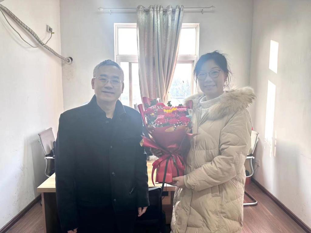 校党委书记柳和生走访慰问教师代表刘乐平。