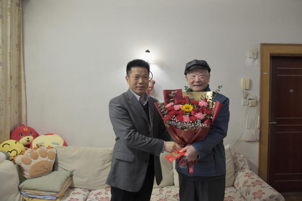 徐长节慰问了离退休老同志李汉屏、杨曙,与他们促膝而谈,亲切询问他们的身体状况,感谢他们对学校发展做出的贡献,祝福他们身体安康、新年快乐。