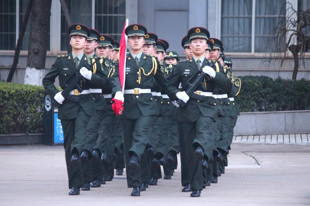 晨曦微露,英姿飒爽的国旗队队员们迈着整齐划一、铿锵有力的步伐,护送鲜艳的五星红旗正步走向国旗台。“升国旗,奏唱国歌!”伴随着嘹亮激昂的《义勇军进行曲》,师生代表们注视着五星红旗冉冉升起,在熠熠晨光中迎风飘扬。他们精神抖擞、身姿挺拔,尽显华交师生开学新风貌。