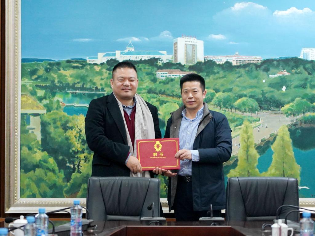2月23日,上海建工二建集团有限公司总工程师龙莉波一行9人来校走访交流。校党委副书记、校长徐长节出席座谈会。徐长节为龙莉波颁发客座教授聘书。