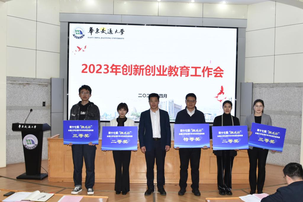 徐长节分别为高水平创新创业大赛获奖团队及优秀组织奖获奖学院颁奖。