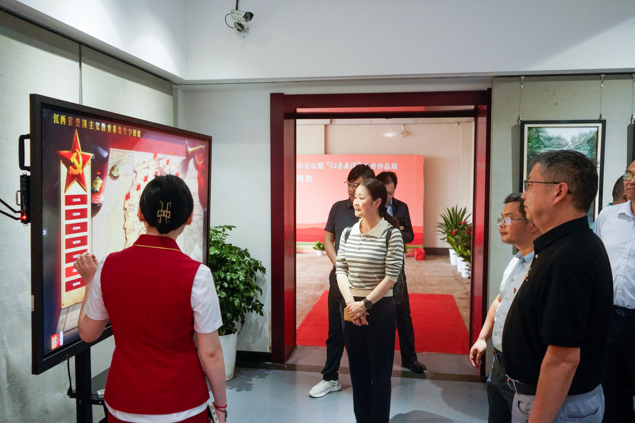 红色走读优秀作品展集中展示了全省高校红色文化育人成果。读书班成员一边认真观摩,一边聆听讲解,领悟每一件红色作品背后鲜活感人的红色故事,全方位、沉浸式地重温了中国共产党百年探索的历史足迹,回顾了发生在江西红土地上的党史故事、英雄事迹,并从中汲取无穷的精神养分。在展演现场,难忘的走读经历、感人的走读故事和深刻的走读体会,感动了在场的每一名学员,让大家感受到了红色文化的震撼力量,并激励大家积极弘扬井冈山精神、长征精神、苏区精神,在学思践悟中坚定理想信念,在奋发有为中赓续红色血脉。