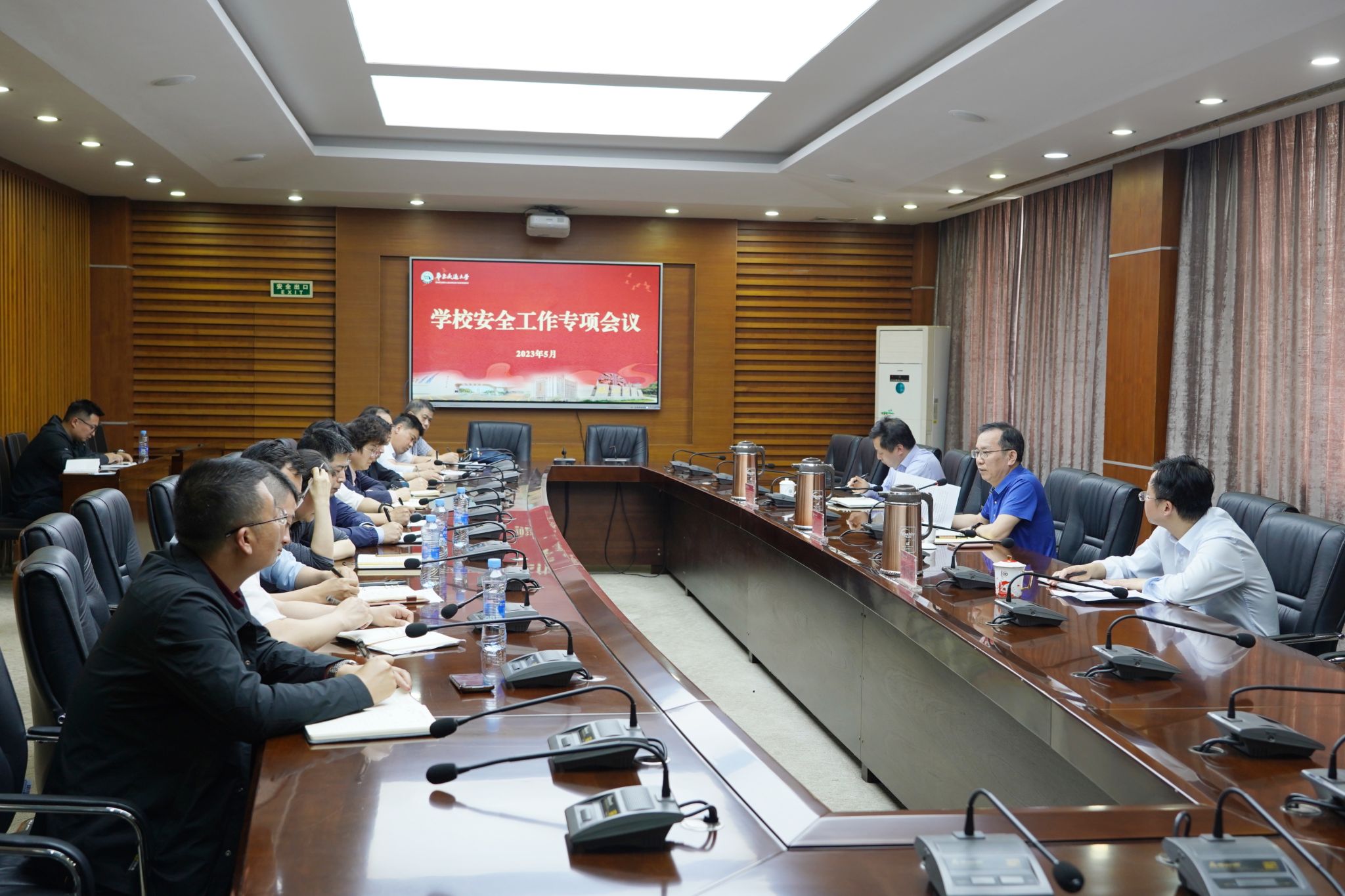 5月23日下午,学校召开安全工作专项会议。校党委书记柳和生出席会议并讲话。校党委委员、副校长杨德敏、黄志超出席会议。