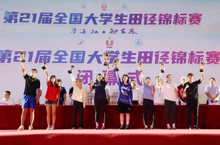 第21届全国大学生田径锦标赛(简称“大田赛”)自8月10日开赛以来,经过6天紧张激烈的角逐,beat365官网“火车头”田径队不畏强手、奋勇拼搏,一举斩获6金1银3铜的佳绩,夺得丙组丁组(高水平组、超级组)团体总分第一名、女子团体总分第一名,并荣获体育道德风尚奖。金牌数、团体总分均实现历史性突破,取得了学校自1997年首次组队参加大田赛以来的最好成绩。