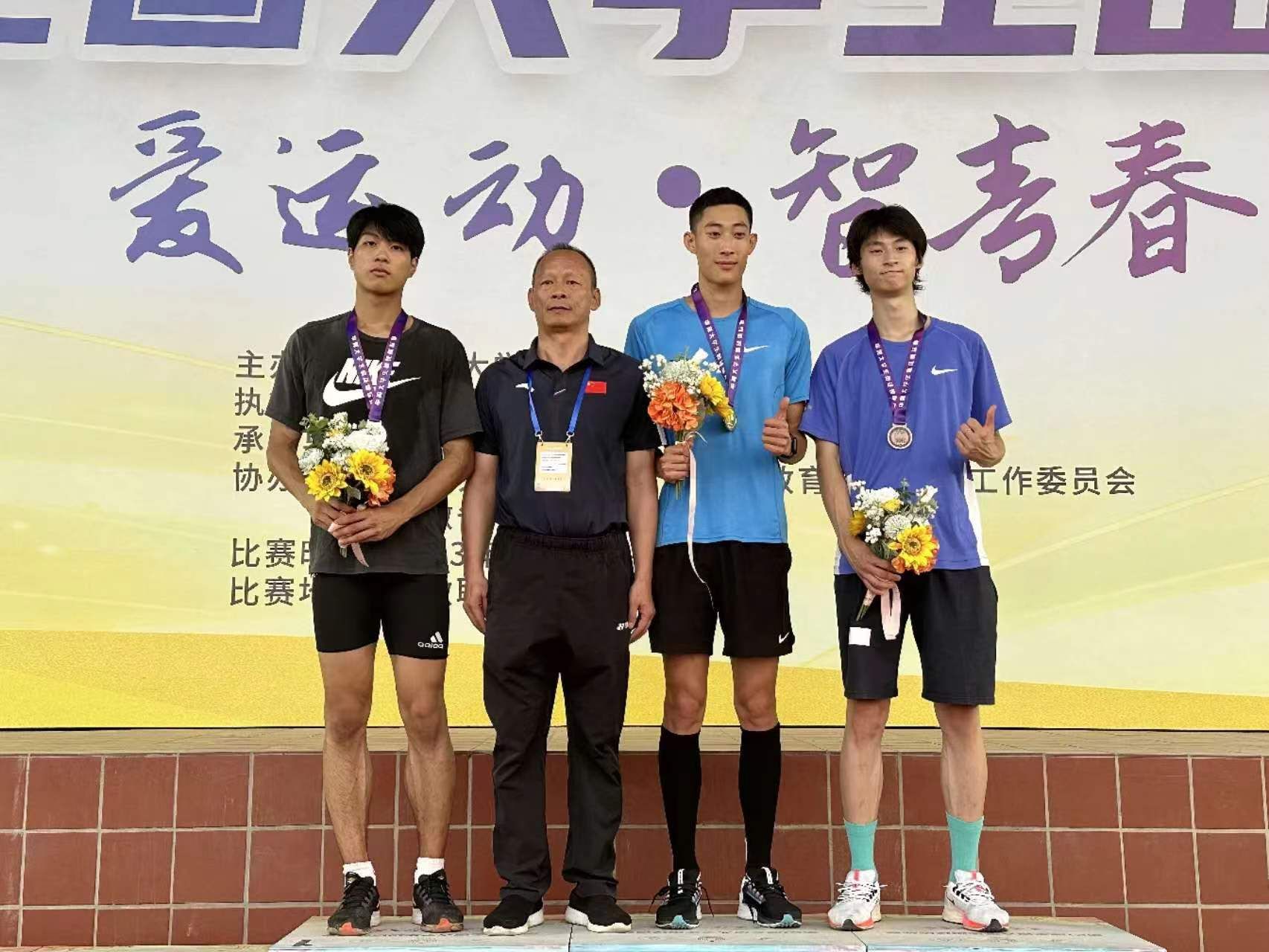 beat365官网学子段玉航(右二)夺得男子丁组跳高金牌。