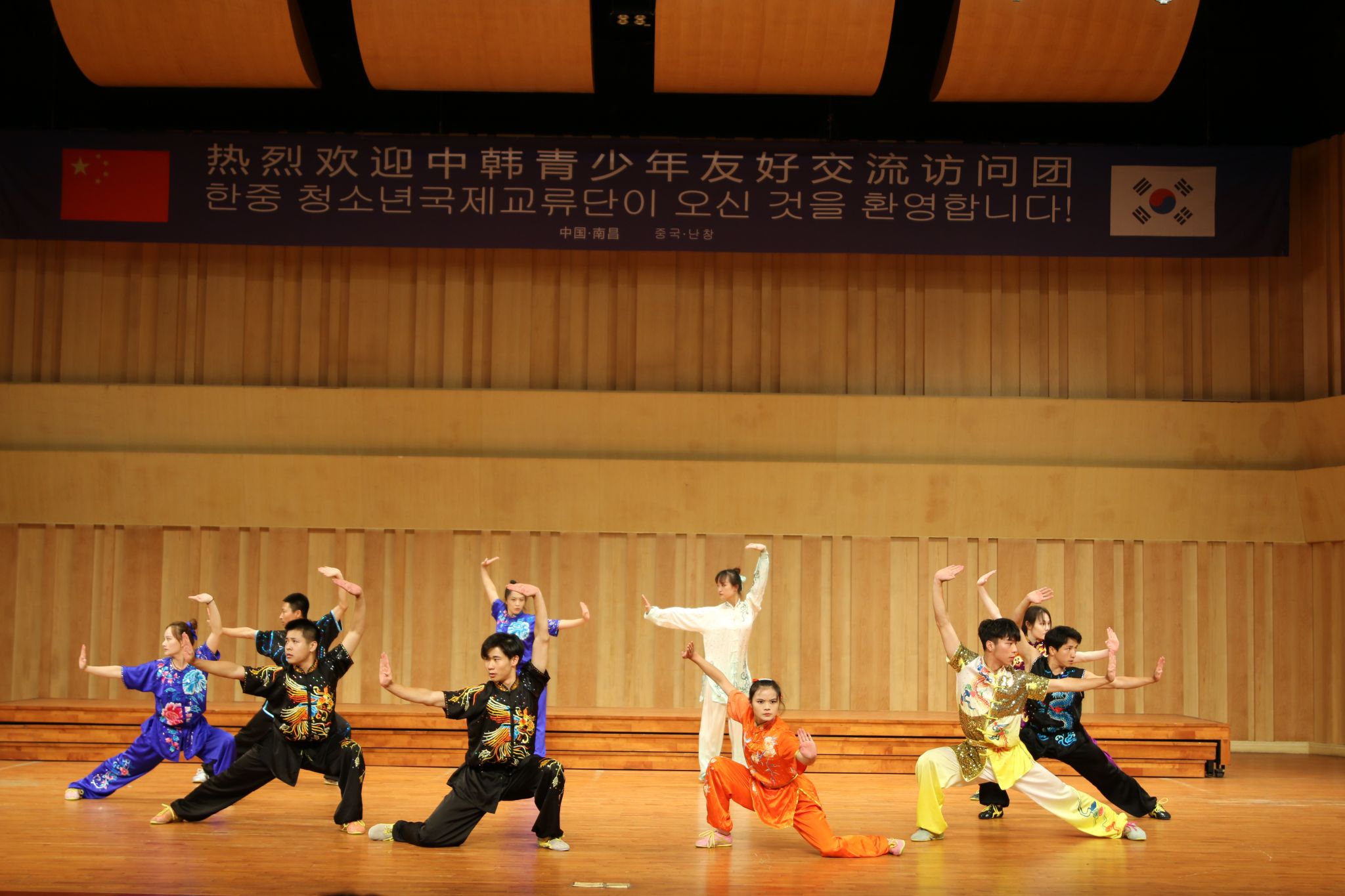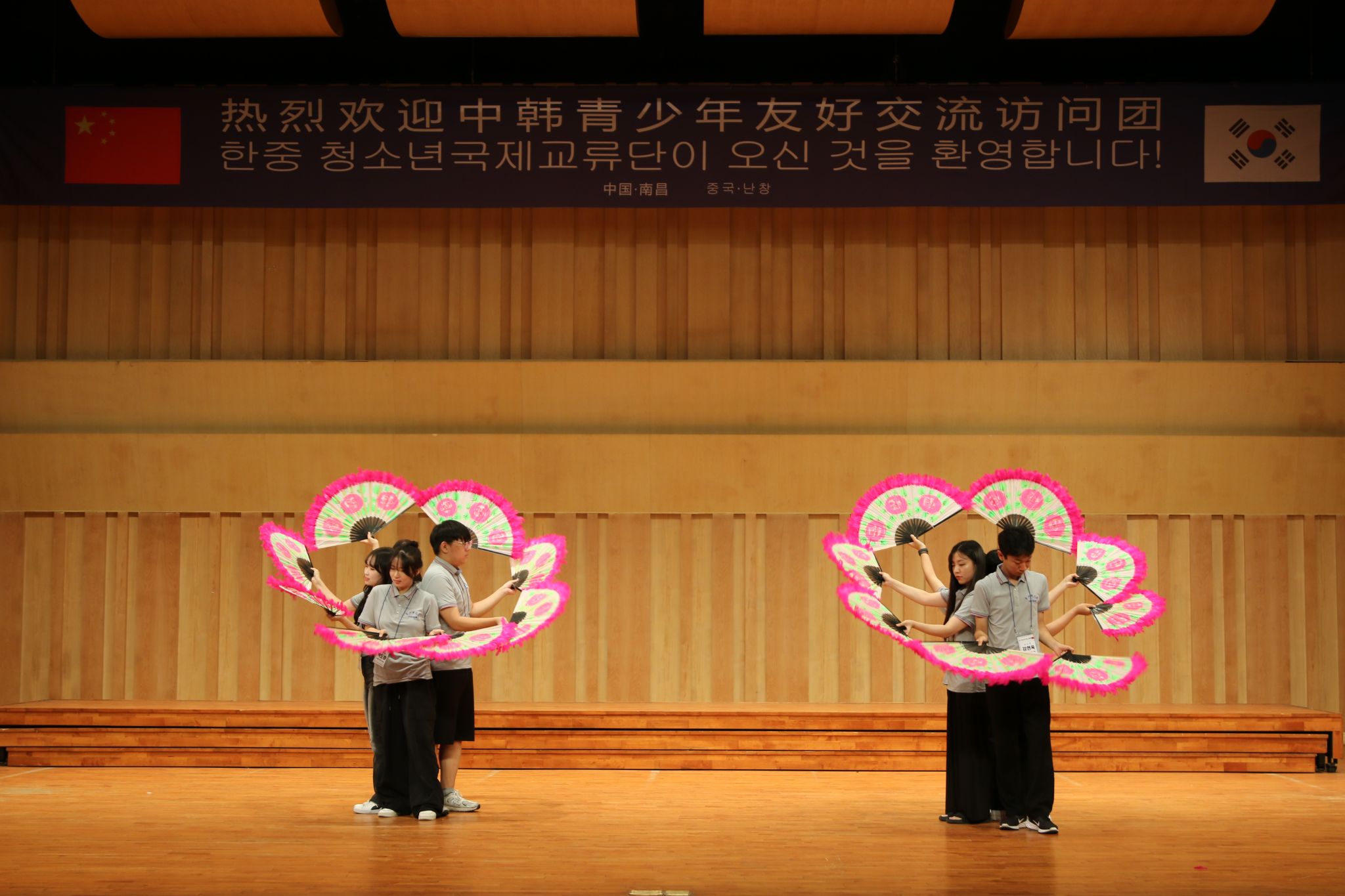 欢迎仪式上,beat365官网师生表演的二胡独奏《花儿为什么这样红》《赛马》、武术《中华武魂》、舞蹈《孤月杳然》,通过悠扬的旋律、刚柔并济的武术动作和极具特色的舞蹈演绎消弭了语言的隔阂,充分展示出中华优秀传统文化的魅力。访问团带来了歌曲演唱《眼、鼻、嘴》、舞蹈表演《KPOP remix》《扇子舞》,以优美的舞蹈动作和独特的表演风格展示了悠久文化传承与青年活力的碰撞。