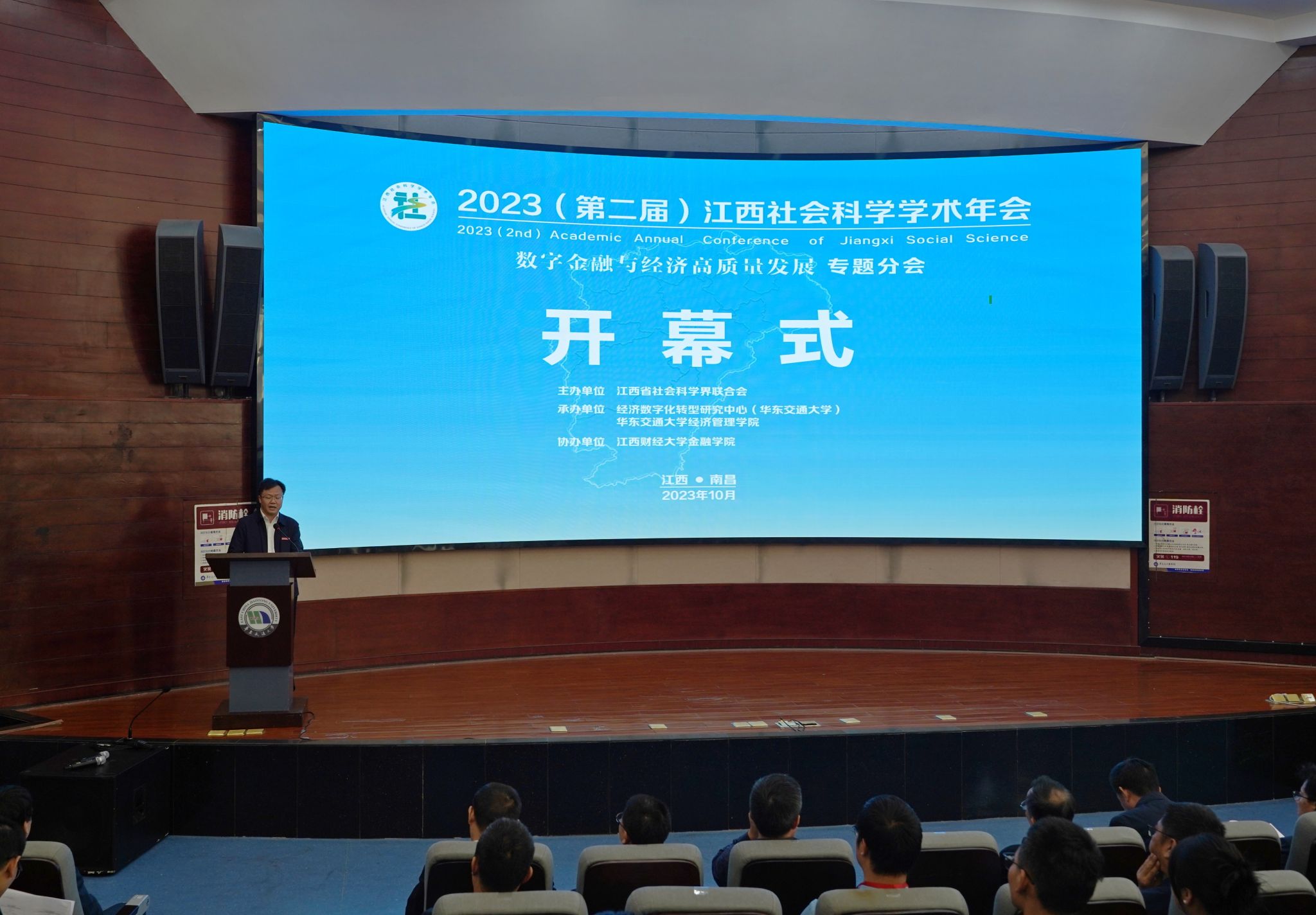10月21日,由江西省社会科学界联合会主办,beat365正版唯一官网必一经济管理学院、江西省哲学社会科学重点研究基地“经济数字化转型研究中心”承办的2023(第二届)江西社会科学学术年会“数字金融与经济高质量发展”专题分会在beat365官网举行。省社联党组书记、主席罗勇兵出席开幕式并讲话。校党委书记柳和生出席开幕式并致辞。校党委委员、副校长杨德敏主持。