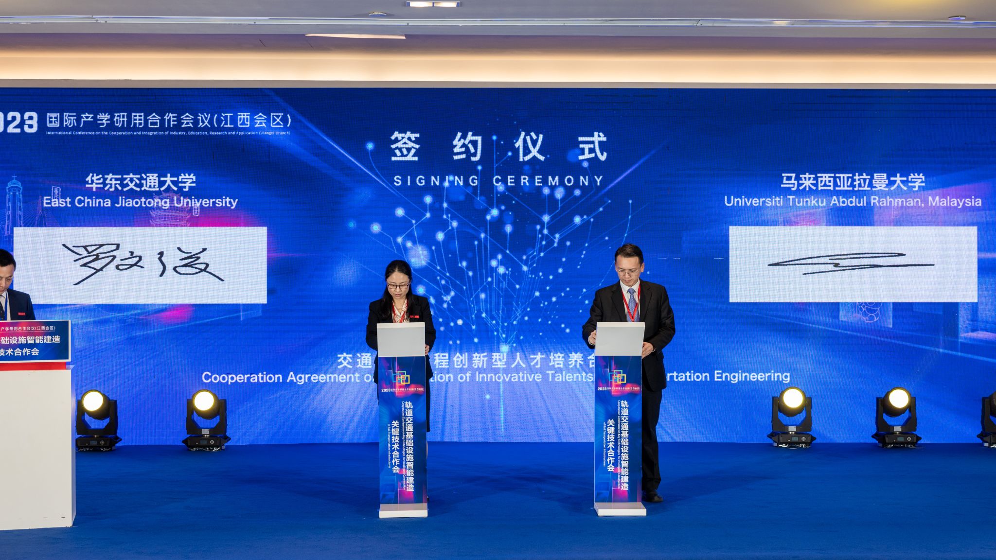 开幕式上,校党委书记柳和生与马来西亚理工大学交通系统与工程研究院海事科研技术中心主任KANG Hooi Siang代表双方为中马智能新能源汽车联合实验室揭牌。校党委副书记、校长徐长节与中铁交通投资集团总经理、党委副书记李建光代表双方签订交通基础建设开发合作协议。欧盟科学院院士、beat365官网土木基础设施智慧建维研究院执行院长王翔宇作了题为“新工科背景下国内外产学研用的模式与成效”的经验分享。