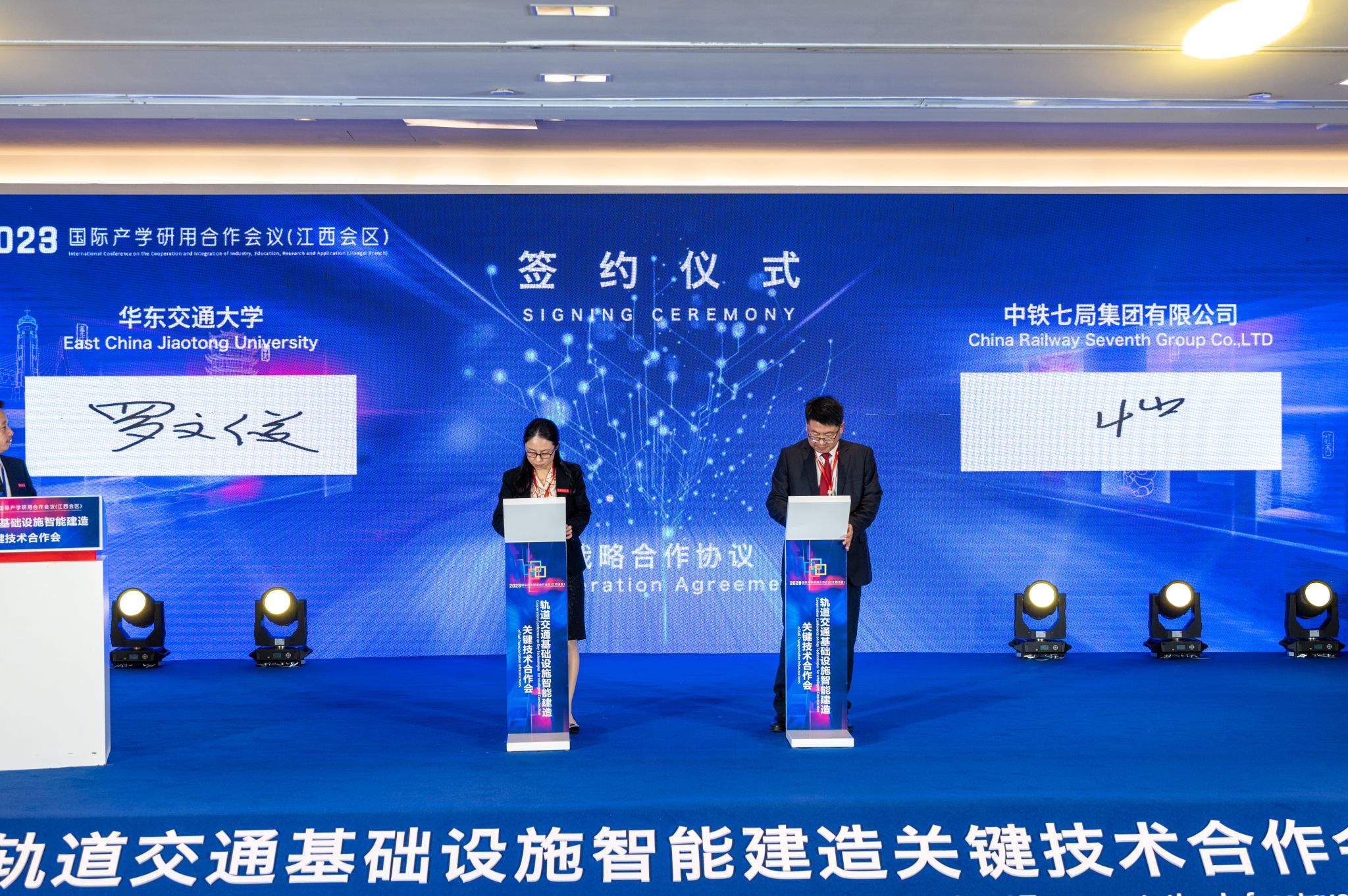 校党委副书记、校长徐长节与中铁交通投资集团总经理、党委副书记李建光代表双方签订交通基础建设开发合作协议。