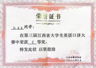 近日,第三届江西省大学生英语口译大赛在南昌大学举行,beat365官网获一等奖1个、二等奖3个、三等奖1个。一等奖数并列全省第一,一二等奖及获奖总数分别居全省第一。