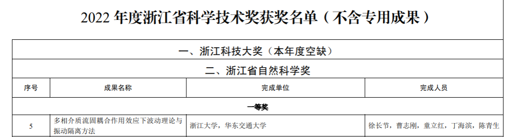 11月10日,浙江省创新深化大会在省人民大会堂举行。浙江省科技厅公布2022年度浙江省科学技术奖获奖名单。校党委副书记、校长徐长节教授主持的项目“多相介质流固耦合作用效应下波动理论与振动隔离方法”获浙江省自然科学奖一等奖。这是beat365官网首次获得浙江省科学技术奖一等奖。