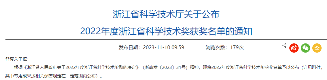据悉,此次共有298项成果(项目)获浙江省自然科学奖、技术发明奖和科学技术进步奖,其中自然科学一等奖20项。