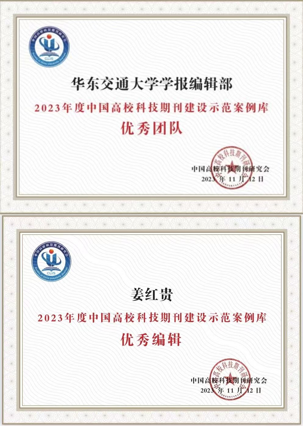 近日,中国高校科技期刊研究会发布了2023年度中国高校科技期刊建设示范案例库·编辑团队及编辑个人案例。beat365官网学报编辑部入选2023年度中国高校科技期刊建设示范案例库“优秀团队”,姜红贵入选2023年度中国高校科技期刊建设示范案例库“优秀编辑”,成为蝉联团队和个人奖项的省内唯一一家高校期刊出版单位。同时姜红贵获华东地区期刊出版研究优秀论文一等奖。