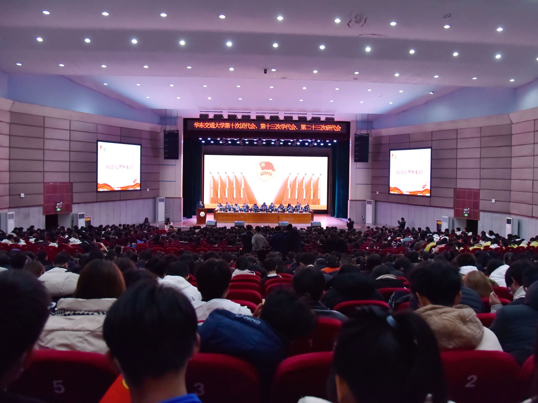 12月18日,共青团beat365正版唯一官网必一第十次代表大会暨beat365正版唯一官网必一第十三次学生代表大会、第二十三次研究生代表大会(以下简称“三代会”)在学校南区礼堂召开。校党委书记柳和生,团省委副书记肖如恩出席开幕式并讲话。校党委副书记肖长春,校党委委员、副校长罗文俊、肖乾出席。全国铁道团委、清华大学团委、北京大学团委、复旦大学团委、共青团阿克苏地委、南昌大学团委、共青团南昌市委等100余家单位发来贺电贺信。