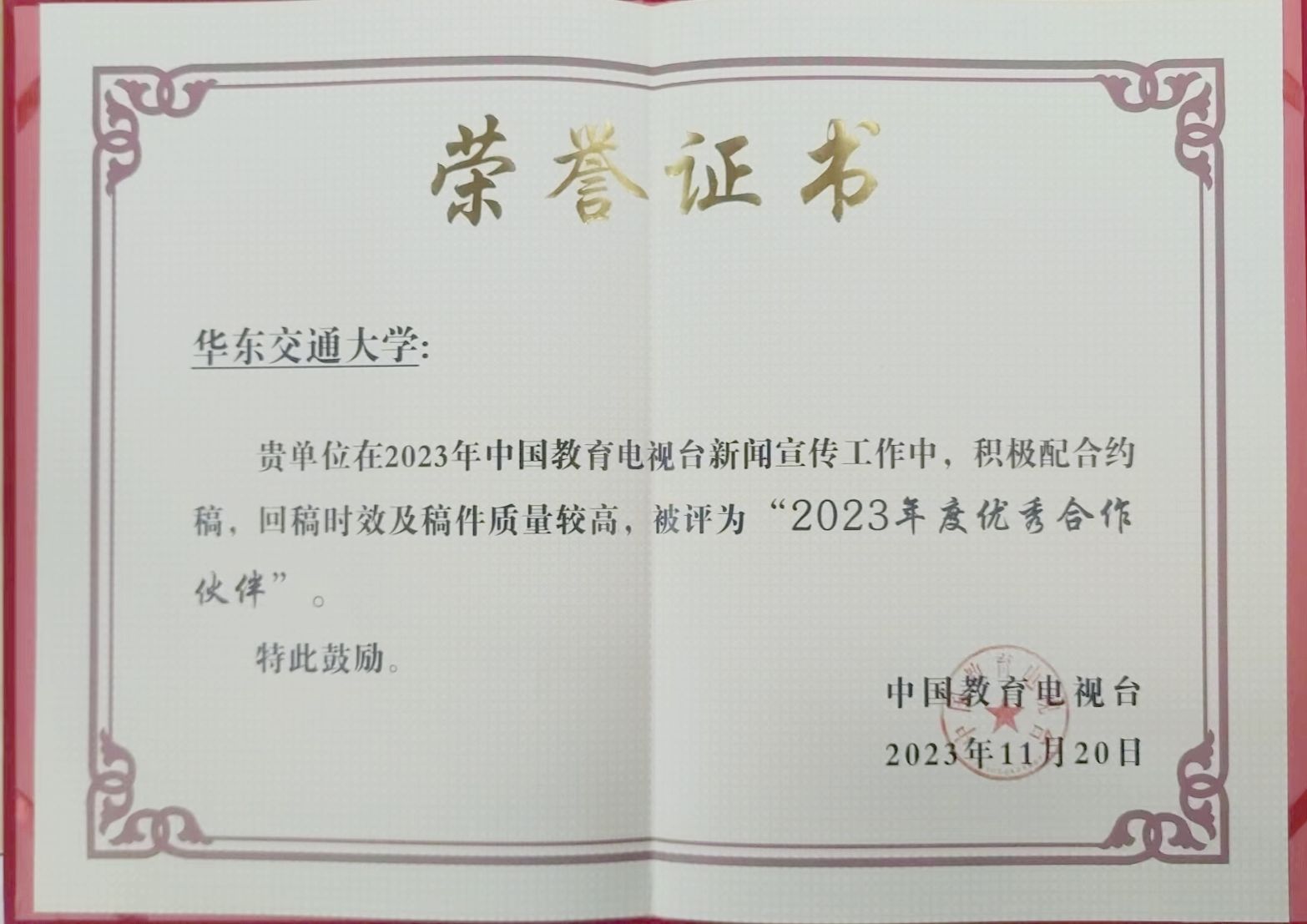 近日,中国教育电视台表彰了2023年度杰出合作伙伴、最佳合作伙伴、优秀合作伙伴,beat365官网被评为“优秀合作伙伴”,为全国唯一获评学校。
