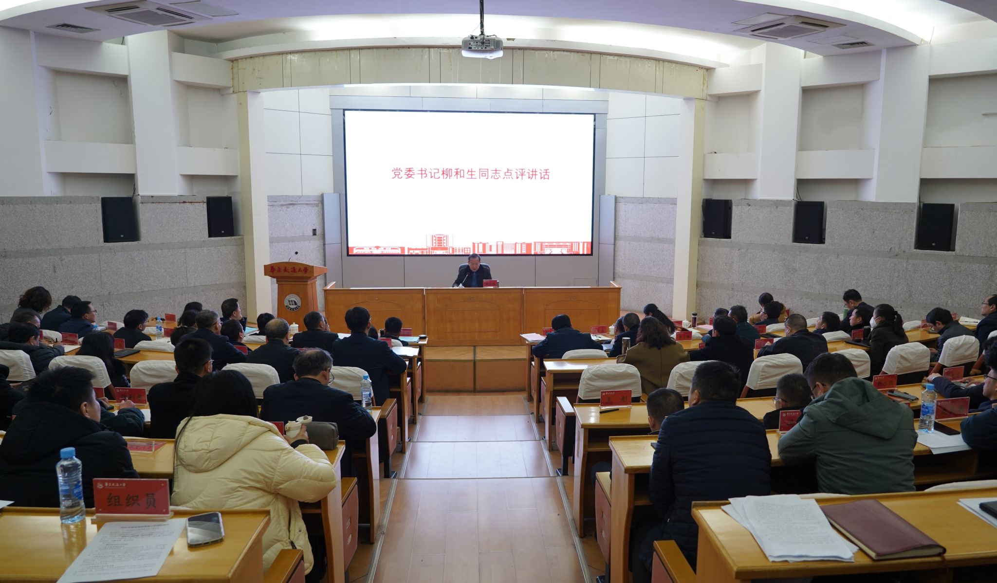 校党委委员,各职能处室(教辅单位)主要负责人、各学院院长、各二级党组织书记、组织员,高层次人才代表参加会议。(马莉娅 摄)