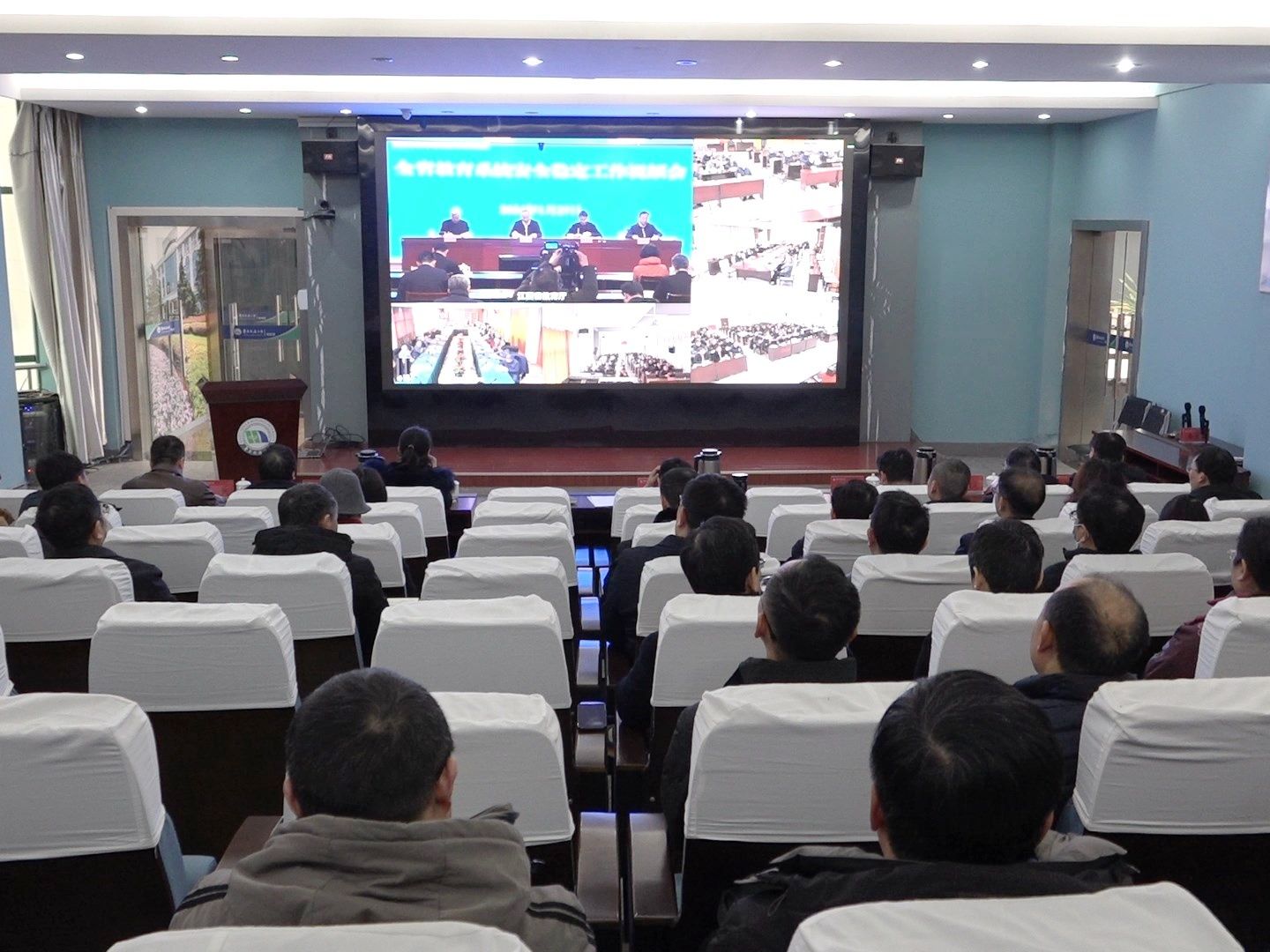 参加全省教育系统安全稳定工作视频会议现场。