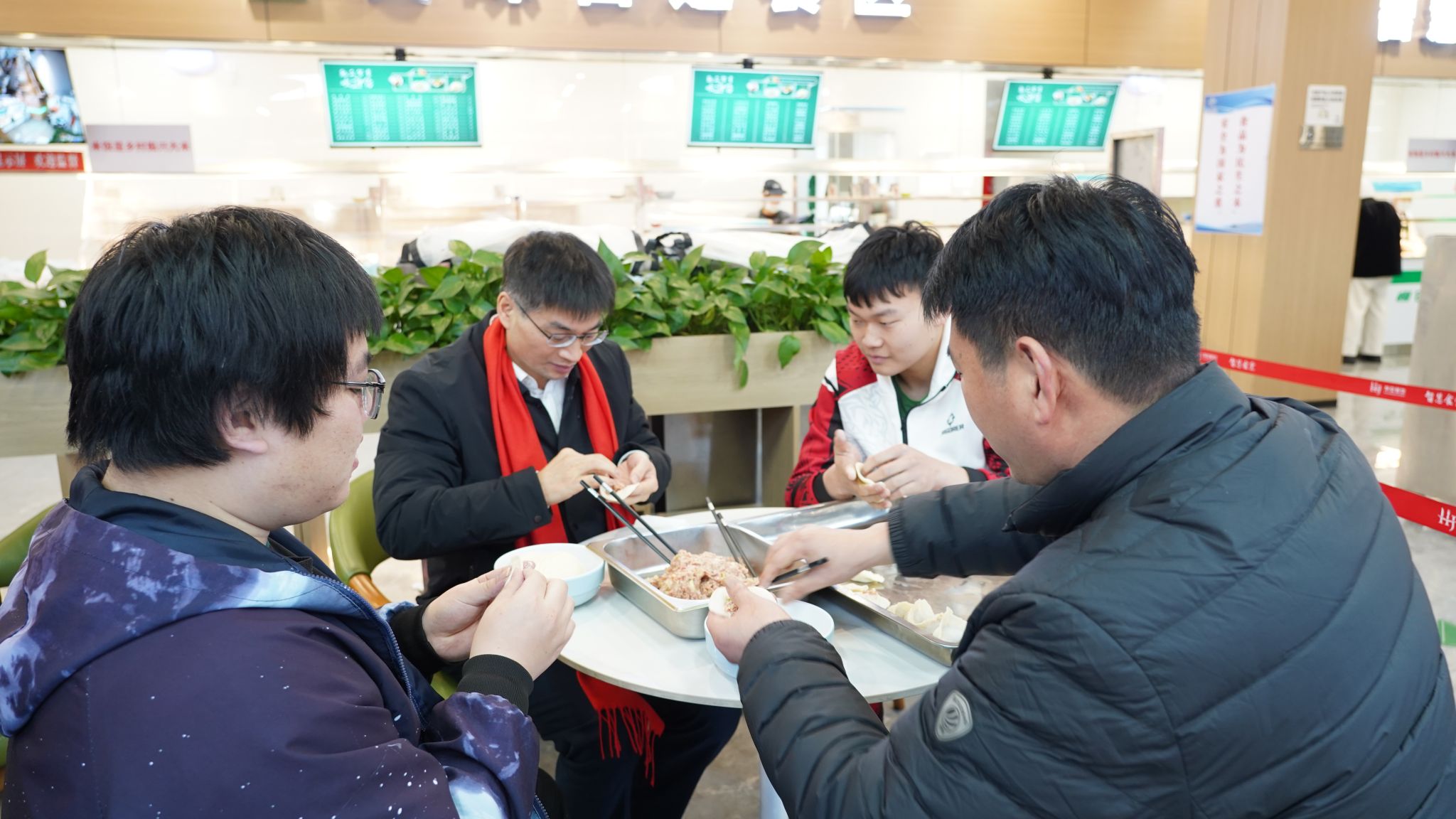美味的水饺很快出了锅,品尝了自己的劳动成果,食堂精心准备的团圆饭也端上了桌。红烧狮子头、油炸大虾、海香菇炒蛋、冬笋炒肉、茄子豆角、玉米排骨汤等菜肴丰盛可口,大家在欢声笑语中寄托对新年的美好祝愿。