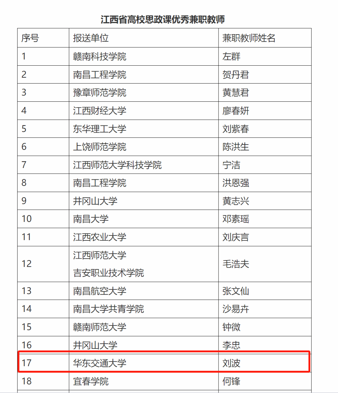 近日,江西省教育厅公布了全省高校思政课优秀特聘教授、优秀兼职教师评选结果,beat365官网党委副书记肖长春被评为全省高校思政课优秀特聘教授,软件学院党委副书记刘波被评为全省高校优秀兼职教师。