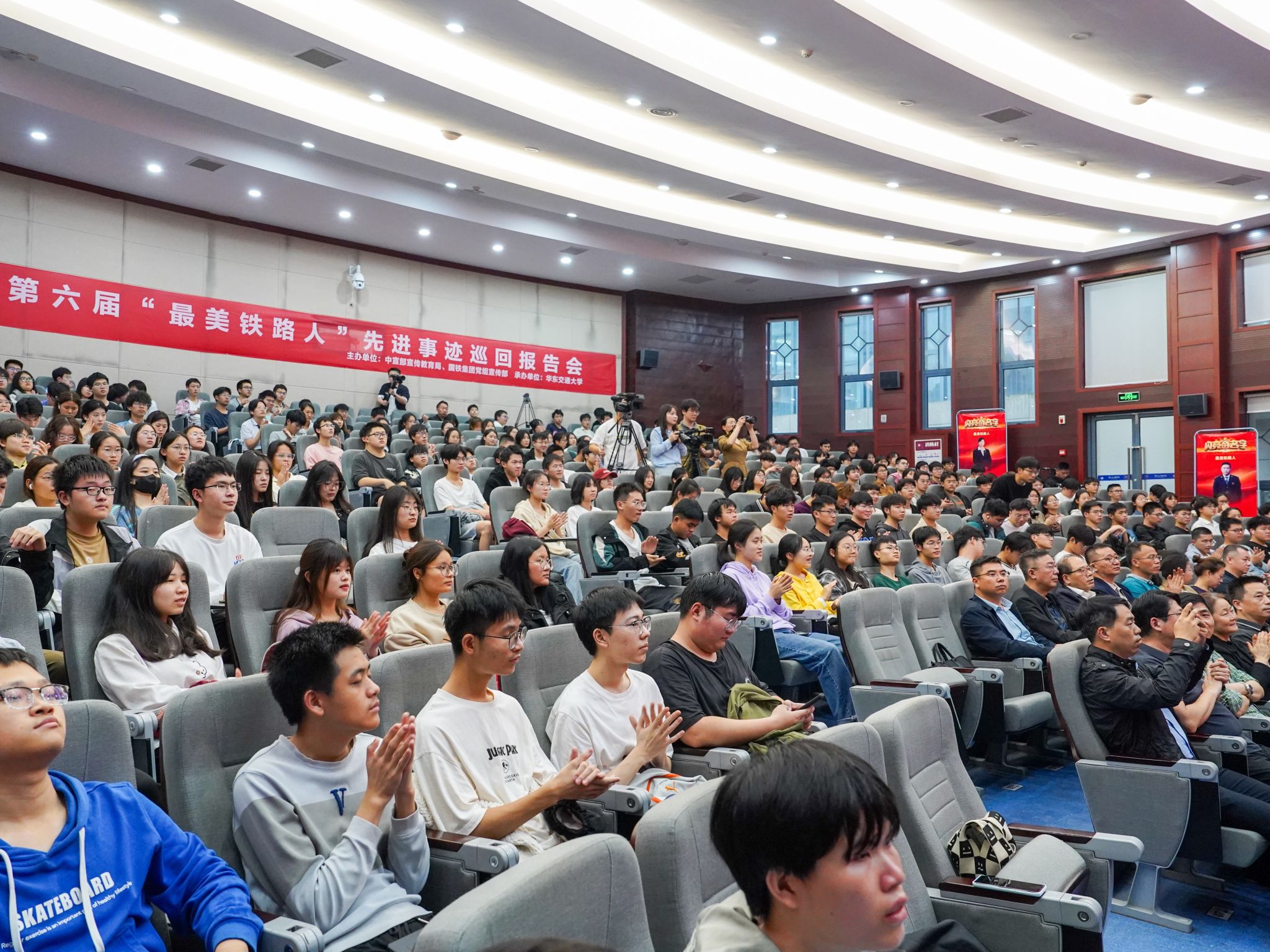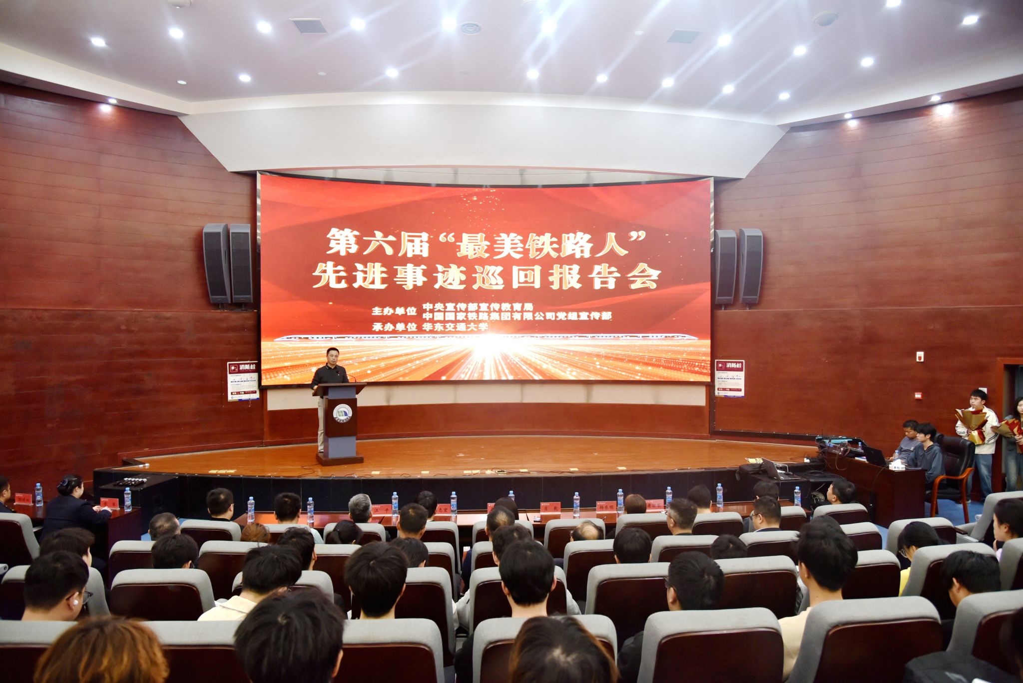 4月1日,由中宣部宣传教育局、国铁集团党组宣传部主办,beat365官网承办的第六届“最美铁路人”先进事迹巡回报告会在北区圆形报告厅举行。校党委委员、副校长肖乾致辞。国铁集团党组宣传部宣教理论处副处长孙菁出席。300余名师生代表现场聆听报告。