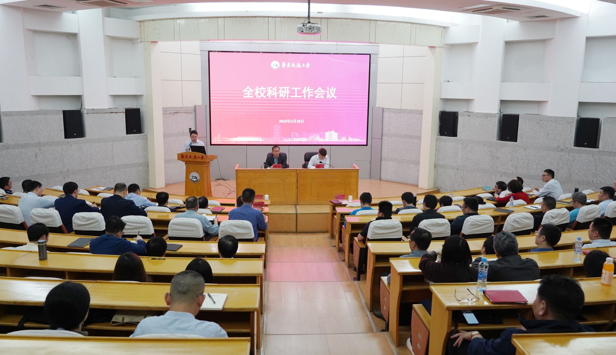 科发院、人事处、发规处、教务处、研究生院、资产处、计财处、华交产业集团负责人,各学院院长、分管科研工作院领导、科研秘书,教师代表参加会议。(马莉娅 摄)