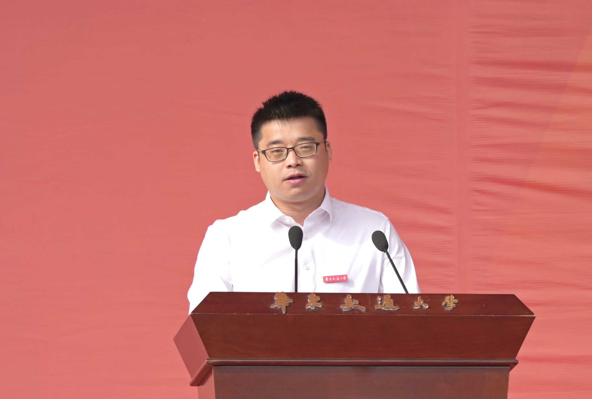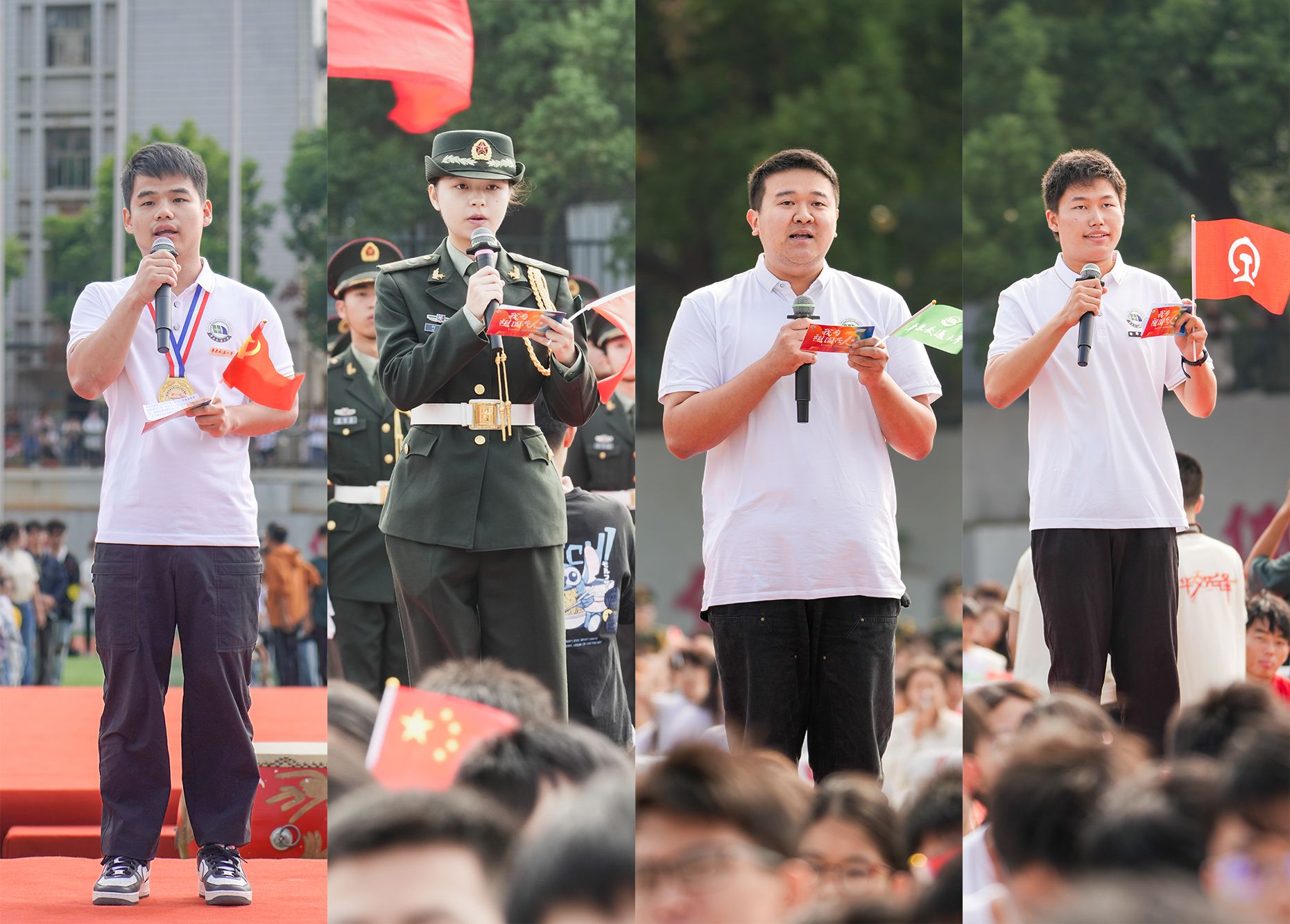 教师代表丁孺琦分享了自己的成长经历,鼓励新生树立远大目标,勇于挑战自我,用实际行动践行理想。