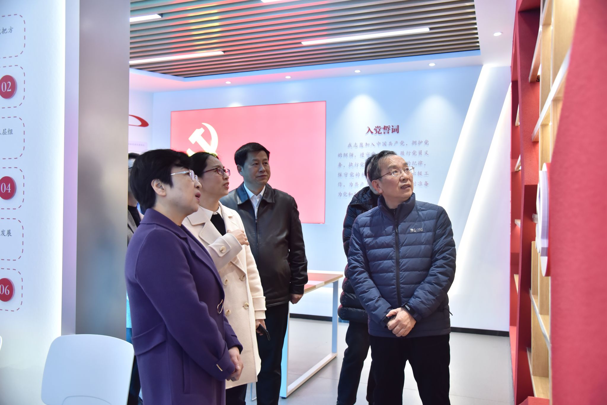 龚建文一行还认真听取了学校“火车头”党建品牌创建情况汇报,参观了“火车头”党建提升工程指挥中心。