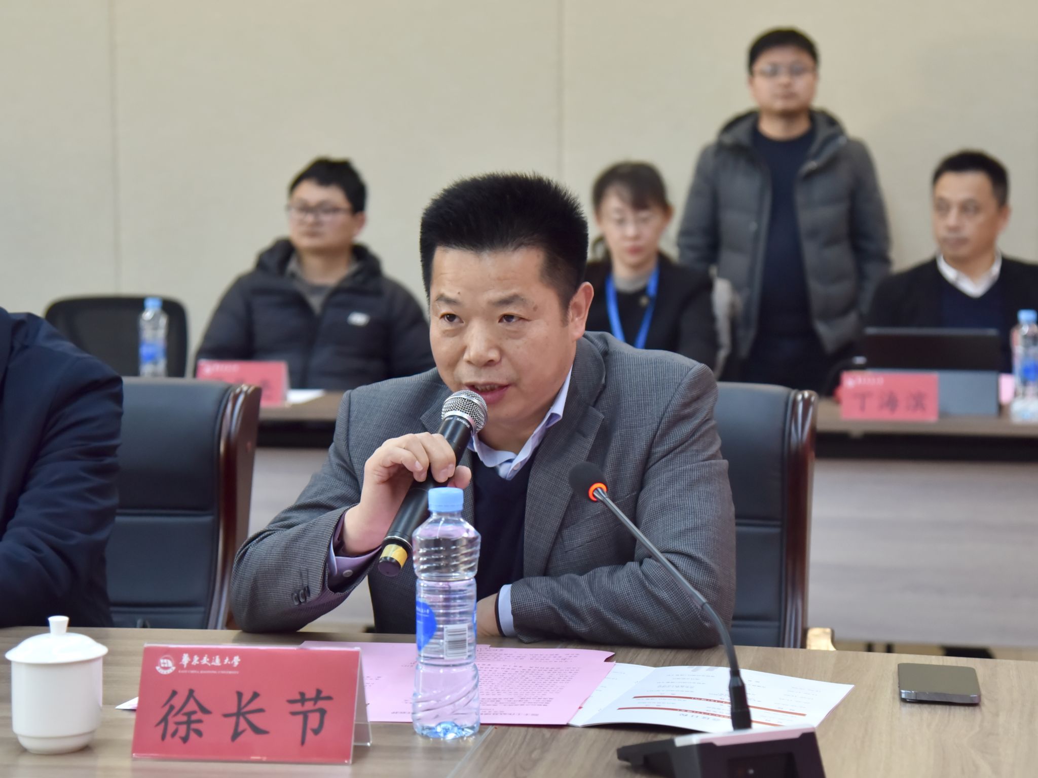 党办校办、科发院负责人,土建学院班子成员、教师代表参加会议。(陈君 摄)