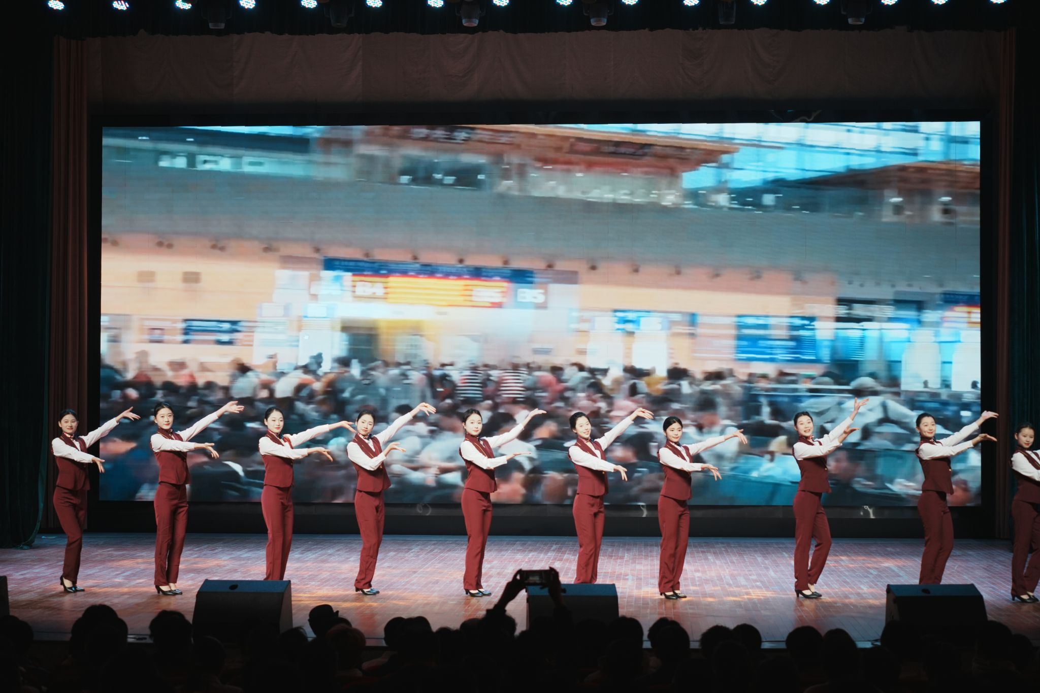 艺术学院2023级舞蹈表演班带来的舞蹈《开往春天的高铁》。