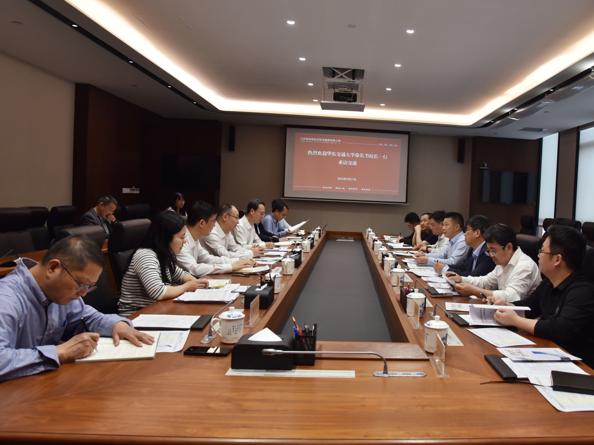 3月27日,校党委副书记、校长徐长节率队赴江西省铁路航空投资集团有限公司(以下简称江西铁航集团)走访交流。江西铁航集团党委副书记、总经理刘震华出席座谈会。