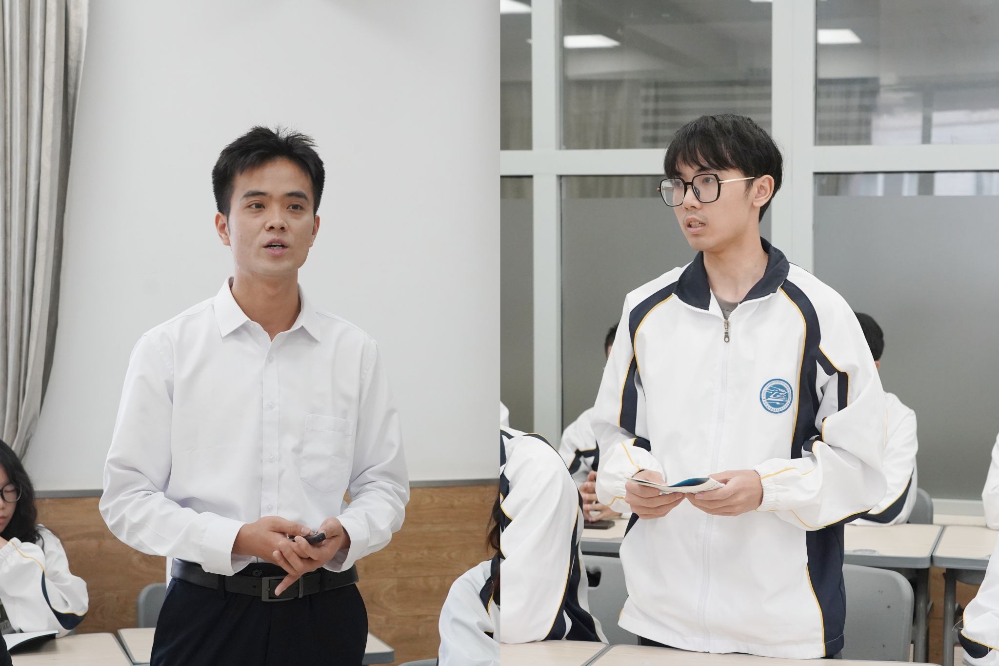 班会上,2025届毕业生代表受邀为学弟学妹们分享了考研、考公、就业备战经验;大家相互提问交流,氛围热烈。