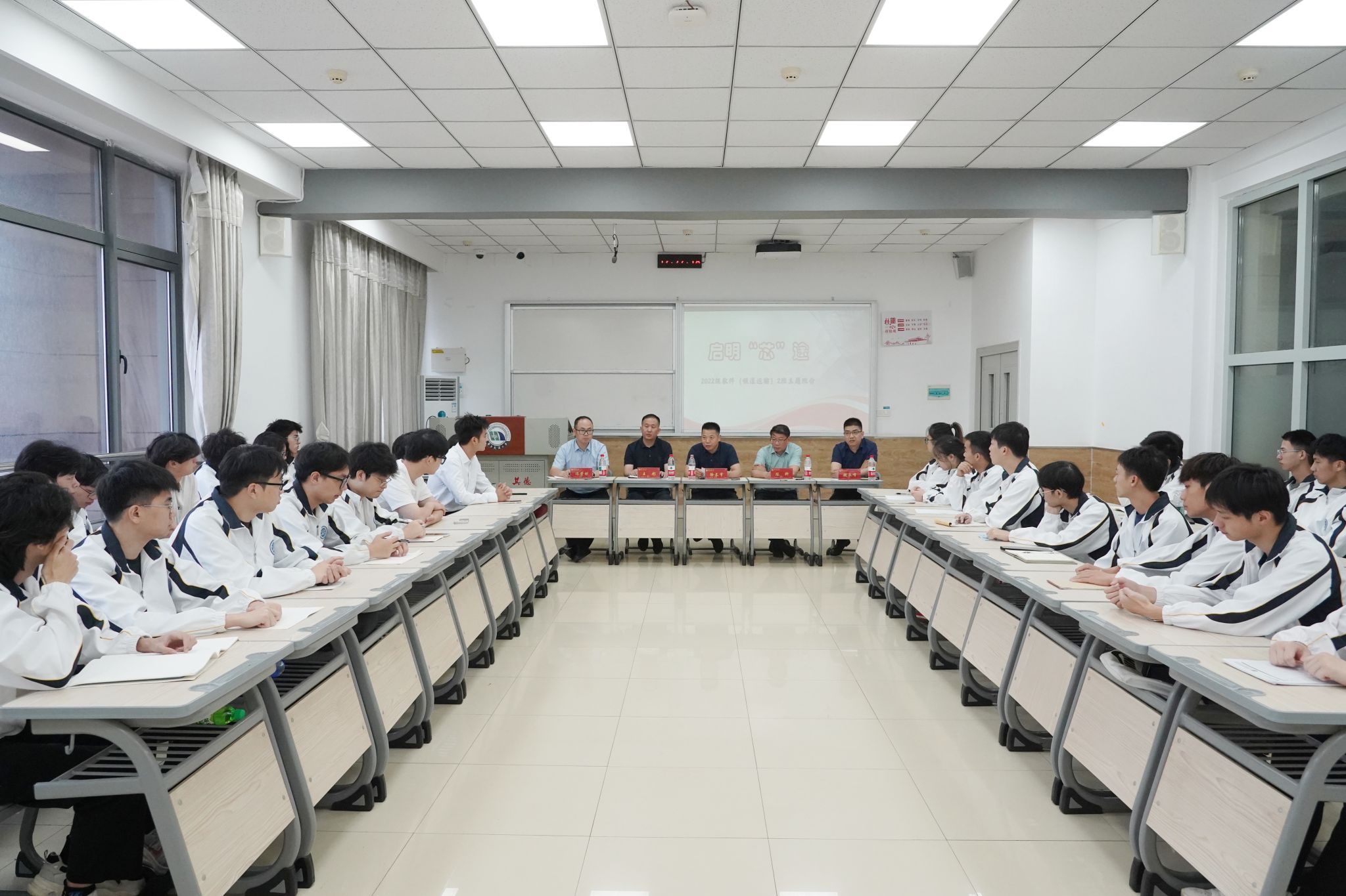 党办校办、招就处、信工学院负责人,2022级软件(铁道运输)专业2班辅导员及全体学生参加班会。(马莉娅 摄)