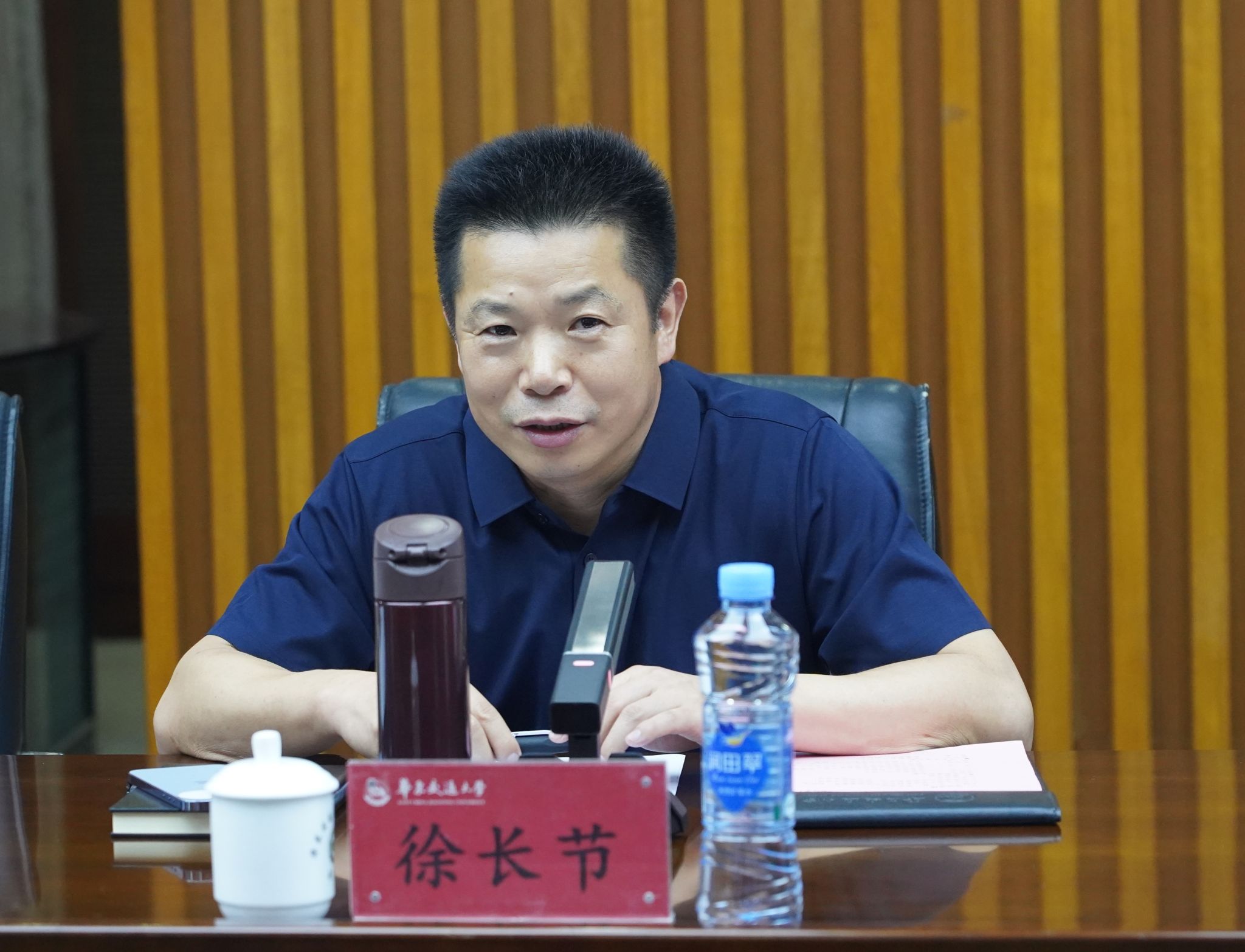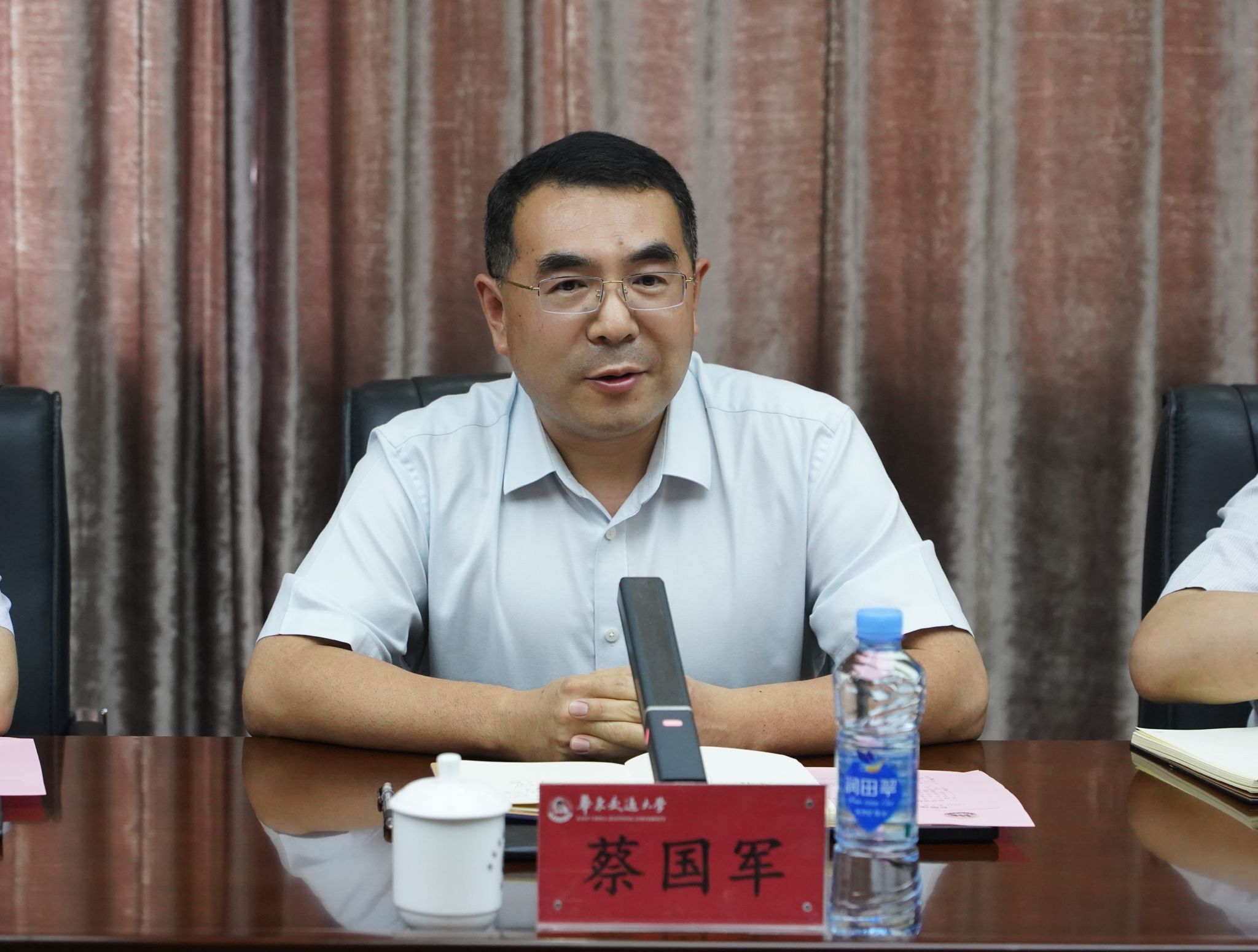 徐长节对蔡国军一行的到来表示热烈欢迎,并简要介绍了学校的基本情况。他指出,安徽建筑大学是安徽省唯一一所以土建类学科专业为特色的多科性大学,学科建设特色鲜明,近年来学校教育事业发展成就显著。他分享了华东交大在全国重点实验室建设以及学科发展、人才引育等方面的工作经验,希望双方加强交流,在互学互鉴中形成发展合力,推动双方事业发展再上新台阶。