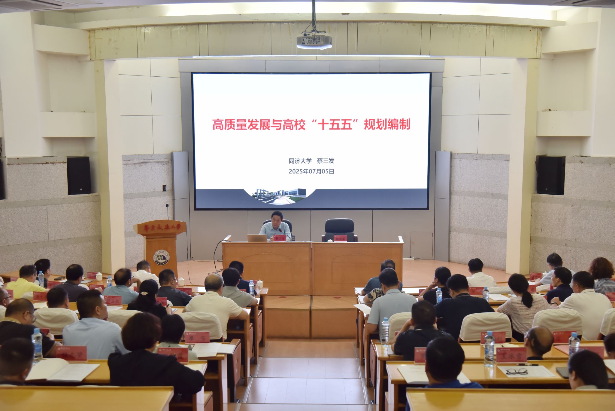 会上,同济大学政治与国际关系学院党委书记、高等教育研究所所长、研究员、博士生导师蔡三发作《高质量发展与高校“十五五”规划编制》专题讲座。校党委委员、副校长杨德敏总结“十四五”规划完成情况,并解读学校“十五五”规划编制工作方案。宣传部、教务处、研究生院、科发院、人事处、土建学院、交通学院、经管学院分别汇报了“十四五”规划完成情况和“十五五”规划编制设想。各小组就《学校“十五五”规划编制工作方案》、学校“十五五”发展规划及专项规划提纲等进行分组讨论,并汇报讨论情况。