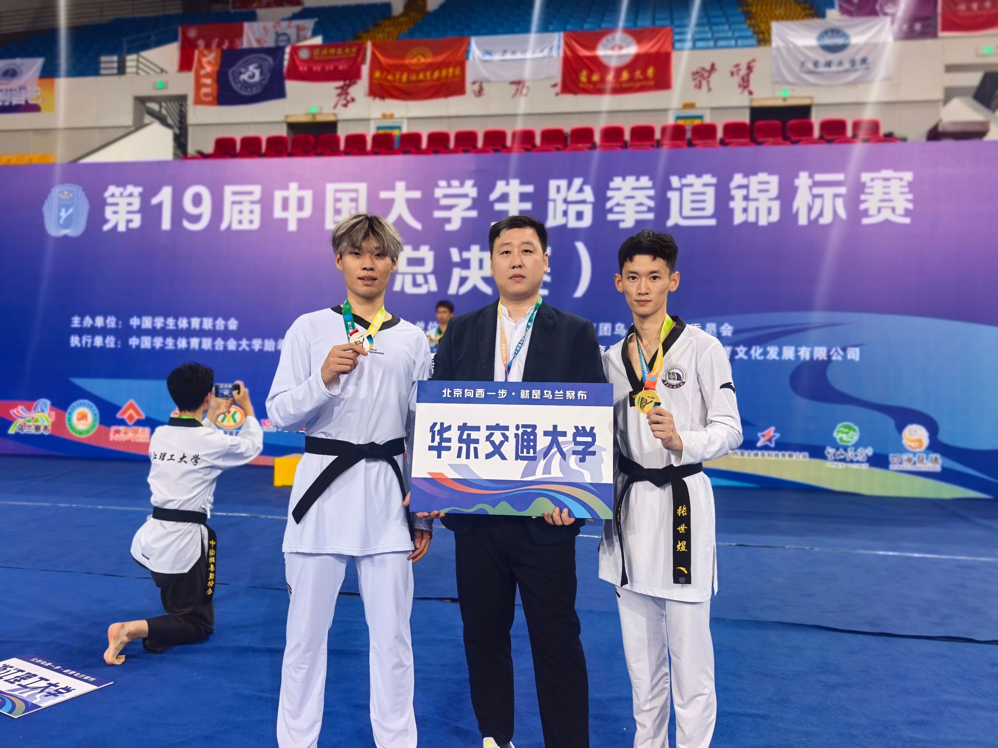 7月6日至11日,第19届中国大学生跆拳道锦标赛(总决赛)在内蒙古乌兰察布举行。beat365官网跆拳道队教练刘伟、林敏带队,队员张世煜、翟少崎(均为2024级运动训练专业学生)沉着应战,表现出色,为学校夺得1金1银,创下了学校跆拳道队的历史最好成绩。