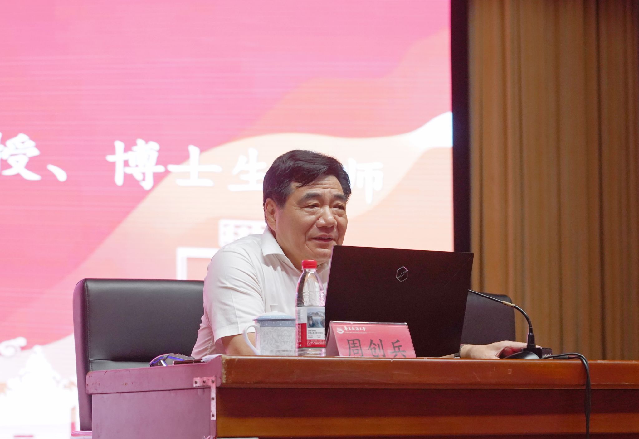 谈及大学生活,周创兵结合自身教育经验,提出“自主学习、自我管理、自我教育、自觉成长”四大核心要义,为新生们适应大学节奏、实现全面发展提供了切实指引。他指出,大学学习有着“满足内在成长需求、融入日常生活动态、承载社会责任担当”的三重境界,鼓励同学们转变学习理念,从被动接受转向主动探索;同时,要学会管理时间、呵护身心健康,通过自我教育将外界的引导内化为自身成长的动力,在点滴积累中提升综合素养,成长为有理想、有本领、有担当的新时代青年。