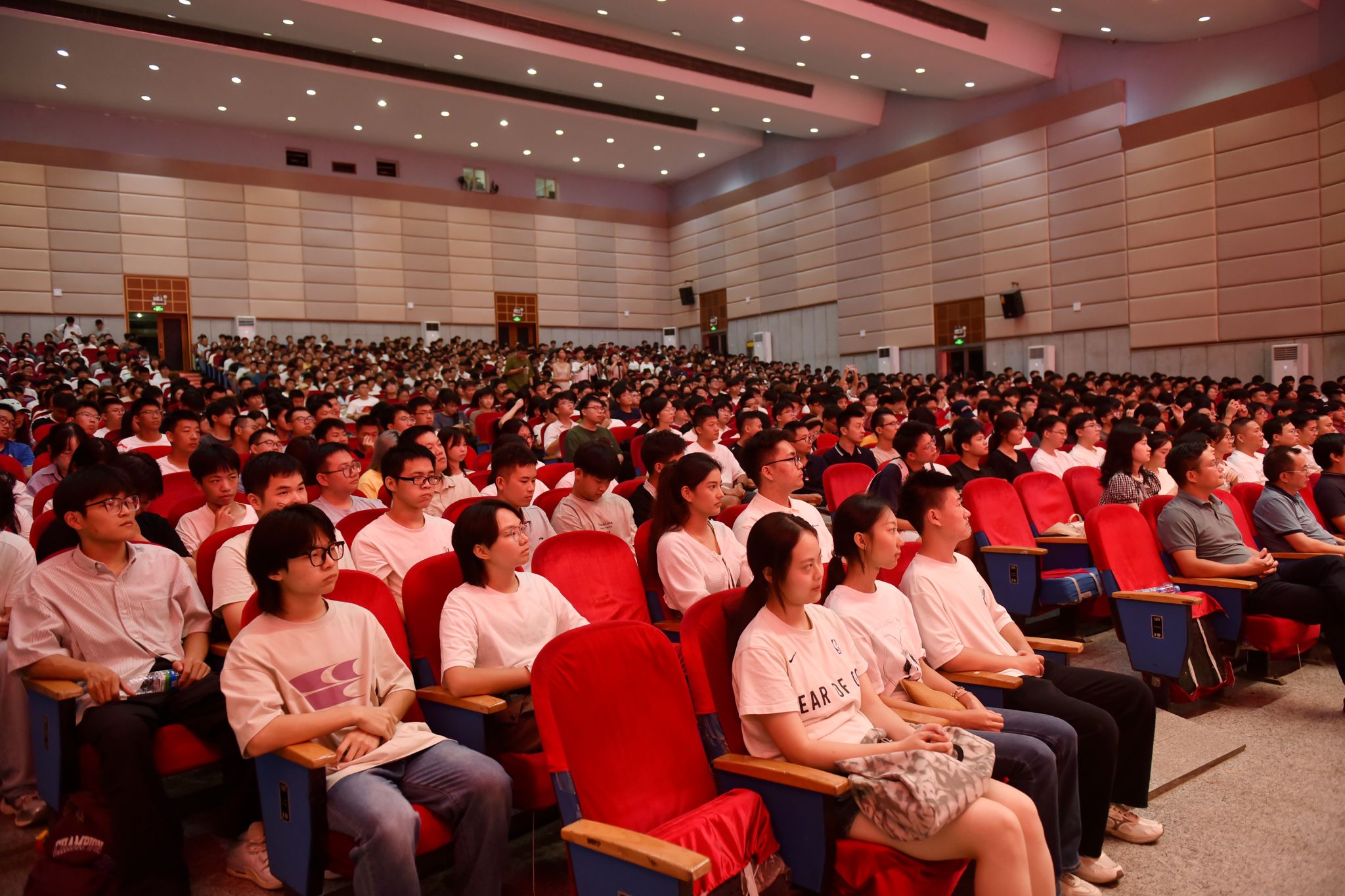 土建学院领导班子成员、系主任、全体辅导员,土建学院2025级全体新生聆听“开学第一课”。(马莉娅 摄)